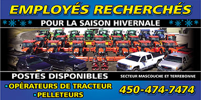 Vous êtes à la recherche d'un emploi au sein d'une entreprise dynamique qui a le souci de ses employés. Déneigement Maximum est toujours à la recherche de nouveaux candidats pour œuvrer dans le domaine du déneigement résidentiel, que ce soit pour opérer un tracteur, chargeur sur roue ou encore effectuer du pelletage.